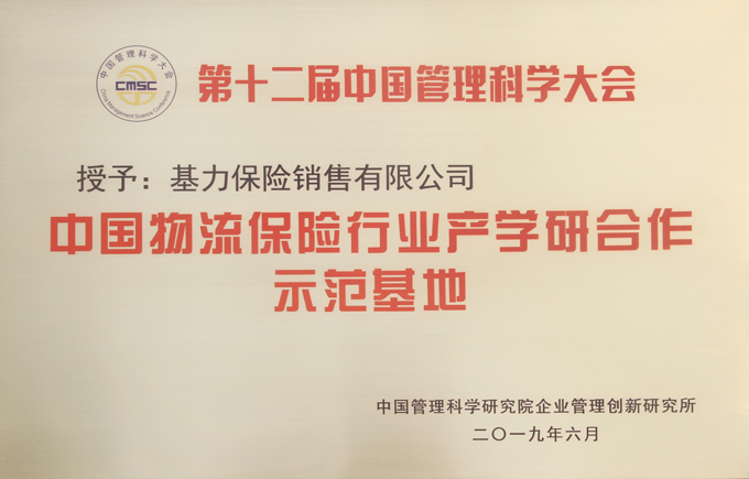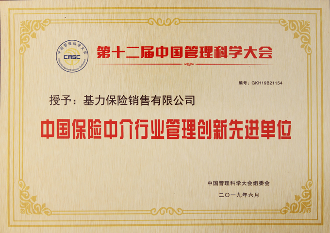 基力保险销售有限公司荣获第十二届中国管理科学家大会荣誉